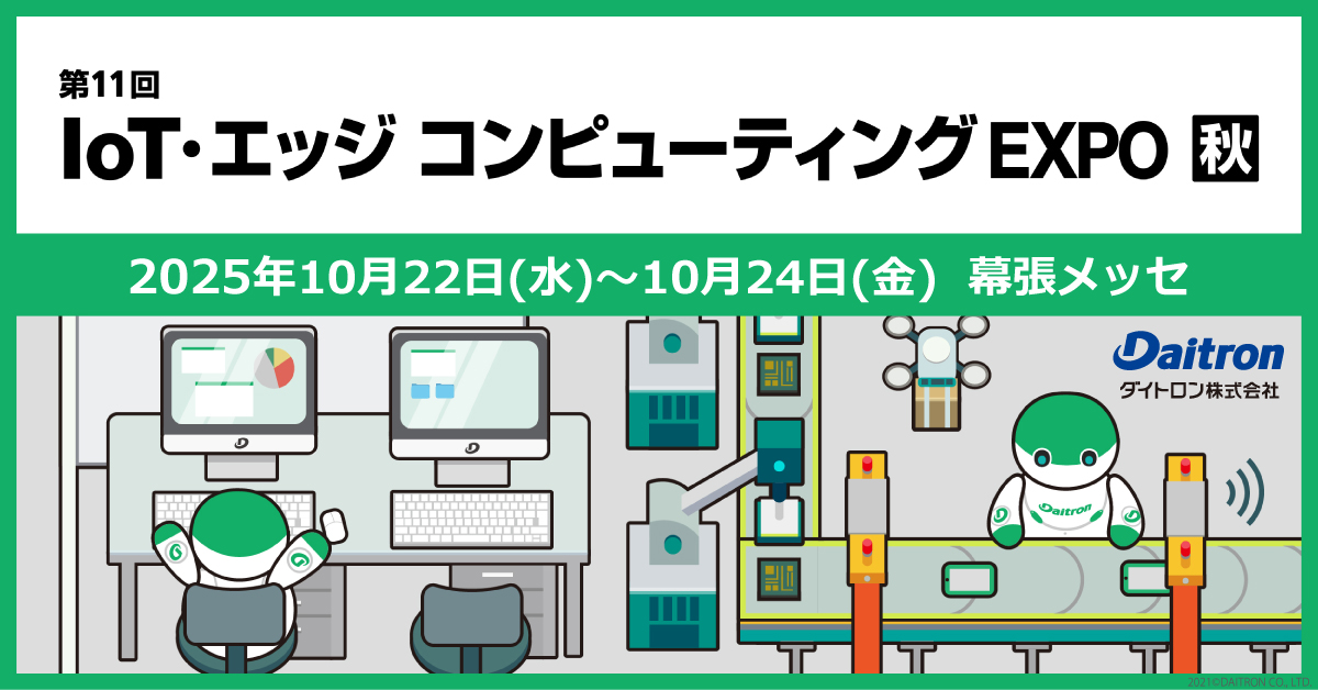 『IoT・エッジコンピューティングEXPO』初日を迎えた10月22日、秋の深まりを感じさせる肌寒い朝でしたが、そんな冷え込む空気を吹き飛ばすような熱気と活気が会場を包み込んでいました。ダイトロンでは、この場を活用し、IoT・ソフトウェアプロジェクトの成果や取り組みを国内外の幅広い来場者にお伝えする貴重な機会となりました。