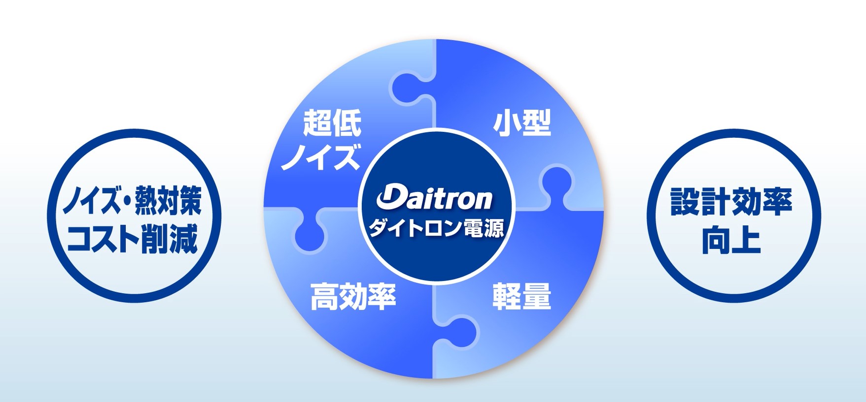 ダイトロン電源は、超低ノイズ性能・小型・軽量・高効率、これらの特長によりノイズ対策や熱対策にかかるコストを削減し、設計効率を高めることができます。