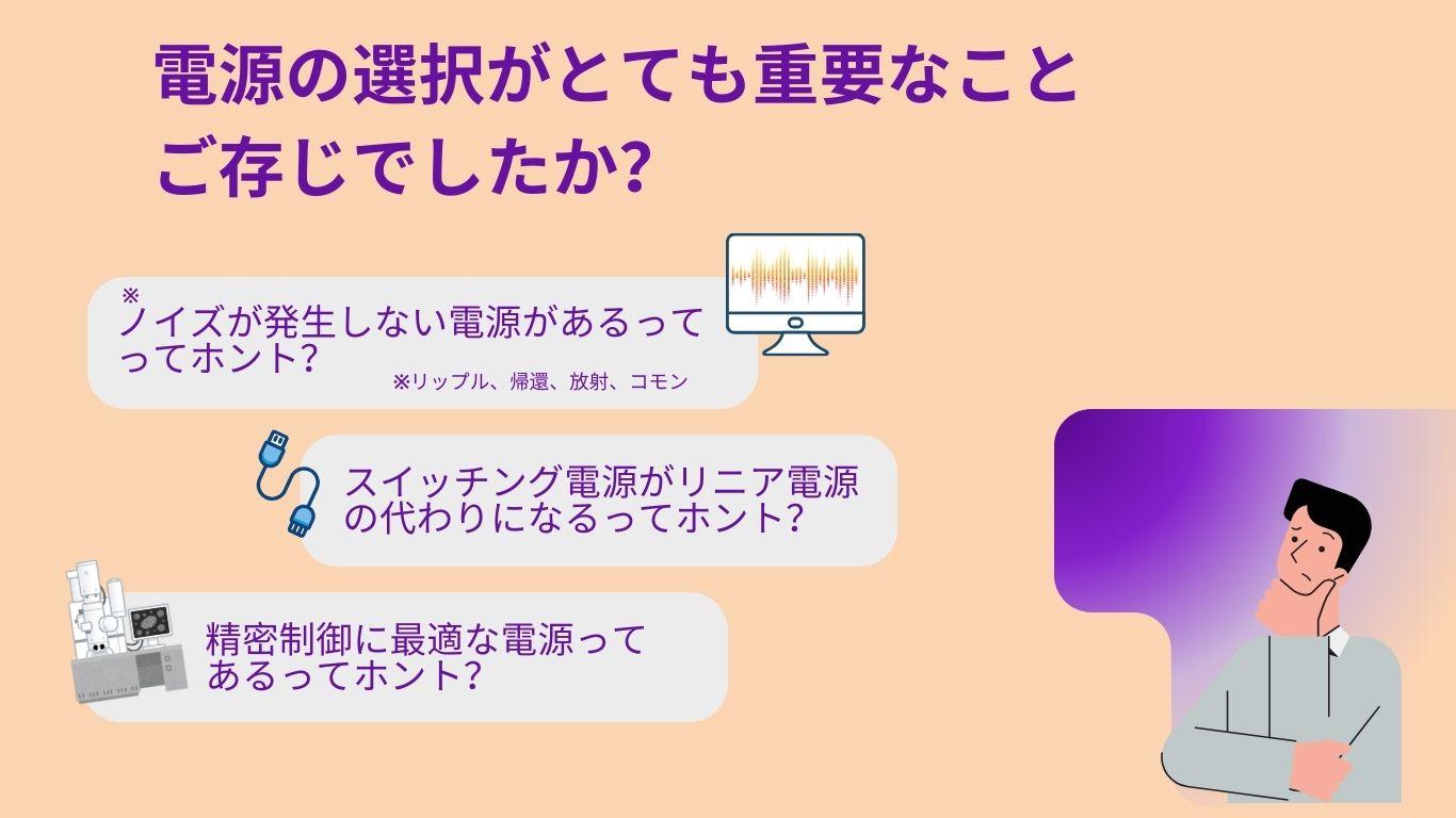 例えば電子顕微鏡に最適な電源を探しているとき、多様な製品の中から選ぶ際の判断基準がわかりにくい、既存の電子顕微鏡との接続性を配慮しなければならない、システム設定変更が煩雑、ノイズ混入による画像の乱れ、解像度の低下、コントラストの悪化など、大切なポイントは様々です。
