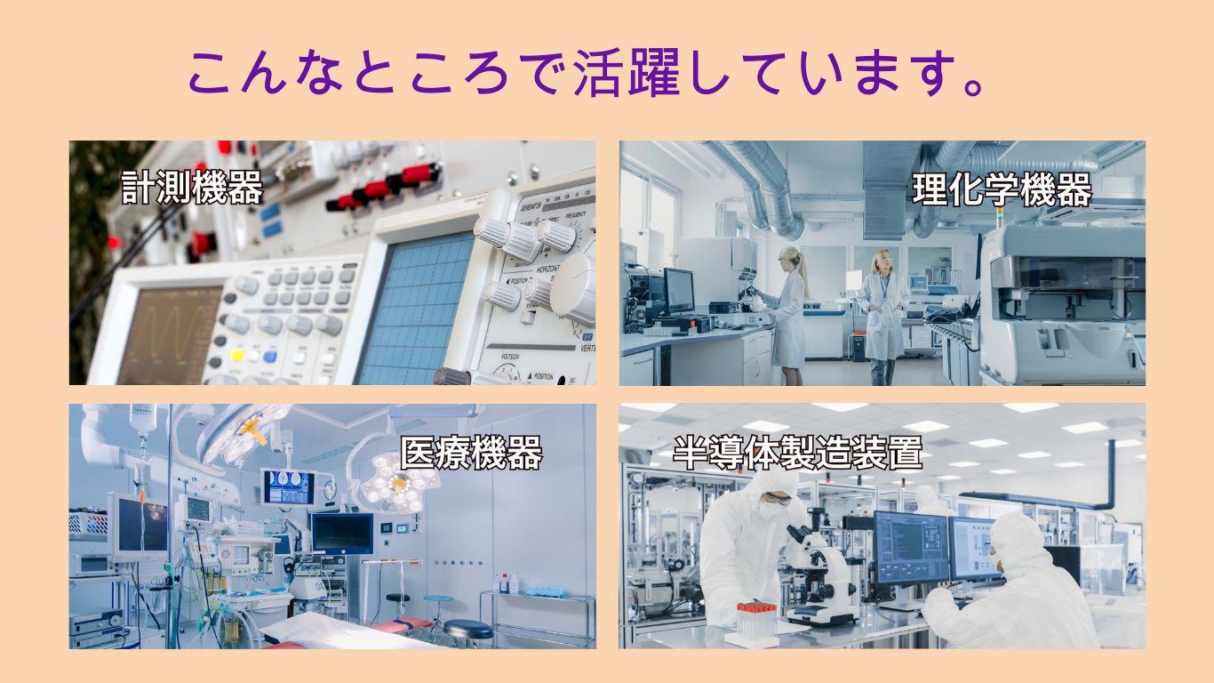 採用例として計測機器、理化学機器、医療機器、半導体製造装置などが挙げられます。