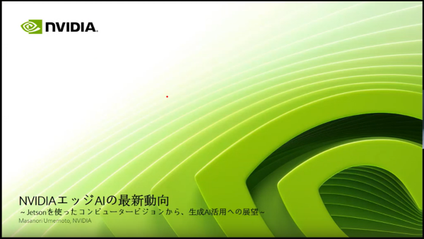 第1部 13:35~14:20 『NVIDIAエッジAIの最新動向 ~Jetsonを使ったコンピュータービジョンから、生成AI活用への展望~』 (発表者)エヌビディア(同) 梅本 将範 様 |