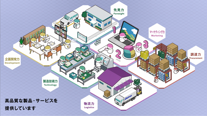 ダイトロンは6つの力によって、製造から販売までを一貫で行い、高品質な製品・サービスを提供しています。