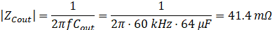 と計算できます。41.4mΩと39.5mΩの差は4%程であり、つまりRloadは無視でき、インピーダンスはほぼCoutのリアクタンス成分 41.4mΩ だけであると考えられます。つまりFcoにおいては右図の様にCoutだけの回路にシンプル化出来ます。