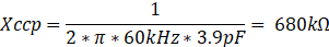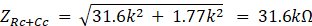 となり、Rcに比べると無視できるほど大きいので、無いもの(無限大)とシンプル化出来ます。 つまりこのステージの Fco(60kHz) におけるインピーダンスは Rcの31.6kΩだけであると考えられます。60kHzでのゲインは、