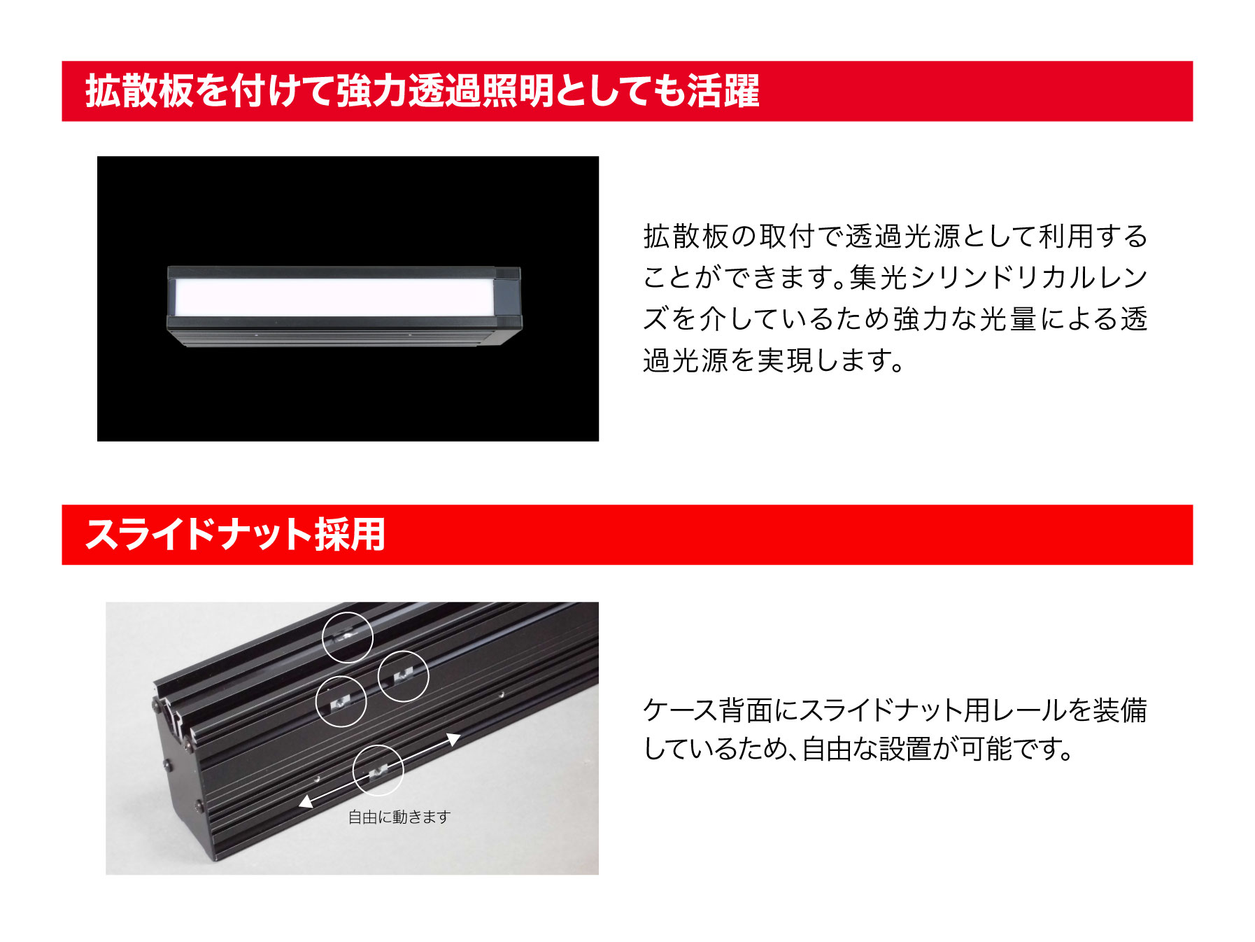 - 長尺サイズの同軸落射照明