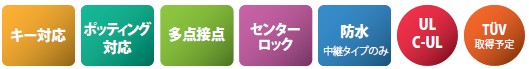大電流に対応するハイパワーコネクタで、しかも、サイズはクラス最小を実現。 独自の「多点接点構造」と、操作性と高い嵌合保持力を備えた「ロック構造」で、主電源接続において高い信頼性を発揮します。 |