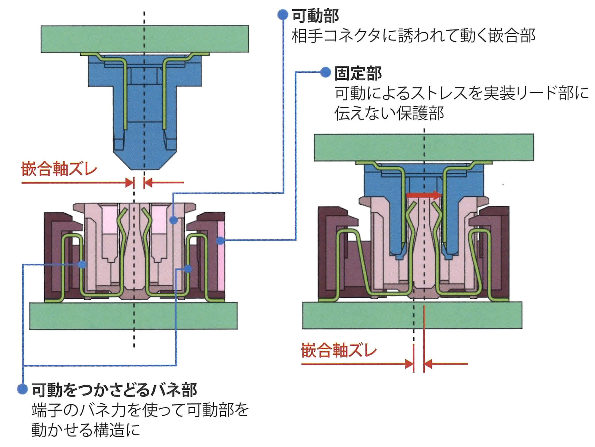 フローティングとは、オス側のコネクタとメス側のコネクタの嵌合軸にズレがある状態でも、