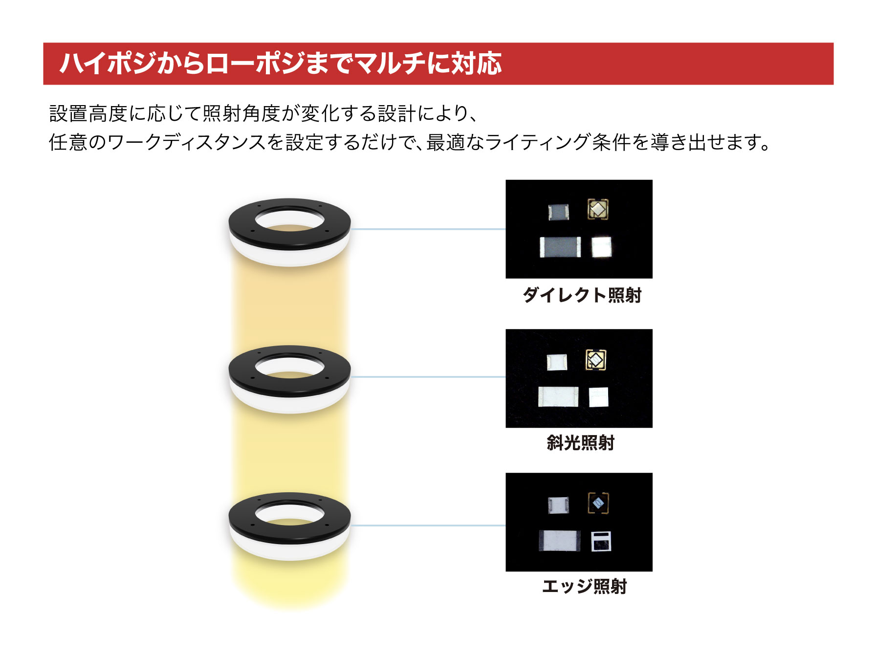ハイポジションからローポジションまでフレキシブルに対応できるマルチリング照明です。