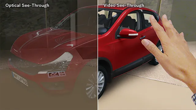 ・MREALでは、ビデオシースルー方式を採用することにより、屋内外を問わず
