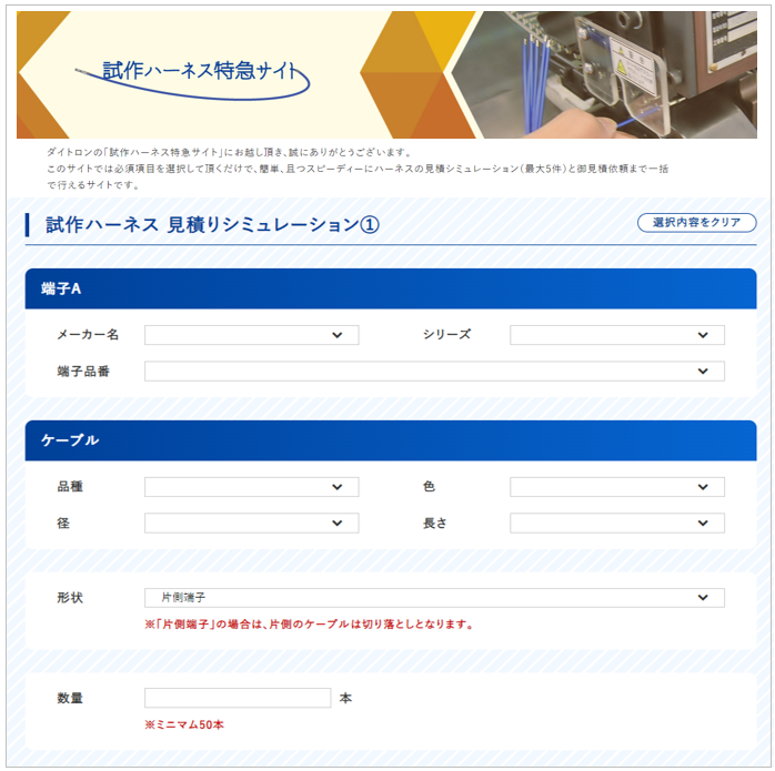 試作ハーネス特急サイト https://webharness.daitron.co.jp/