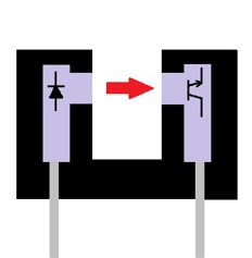発光と受光が1つのパッケージに対向して納められており、その間を検出物が通ることで光がさえぎられることで物体の有無を検出することができる光スイッチです。