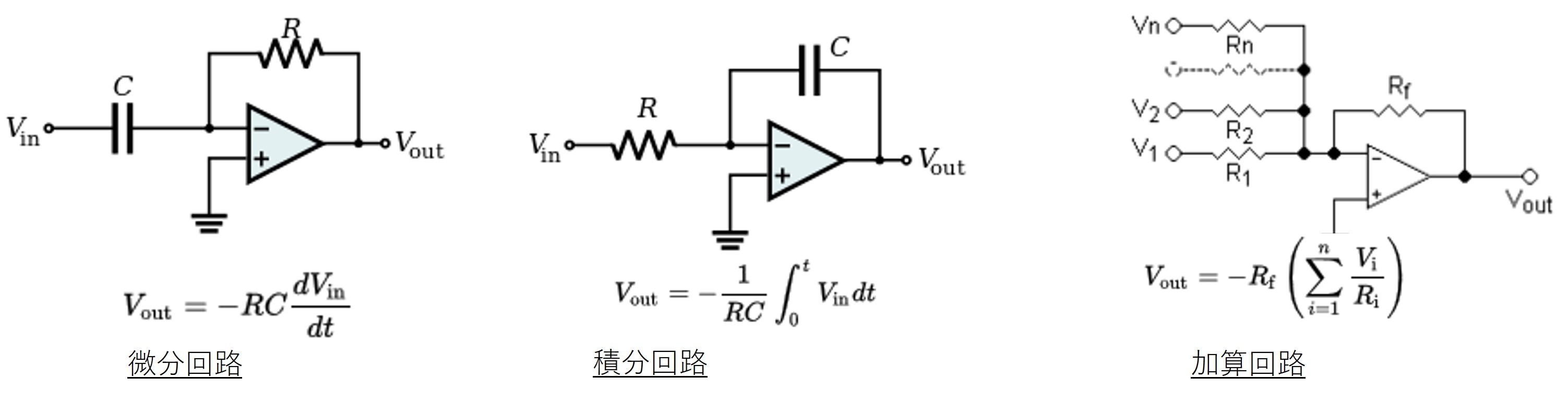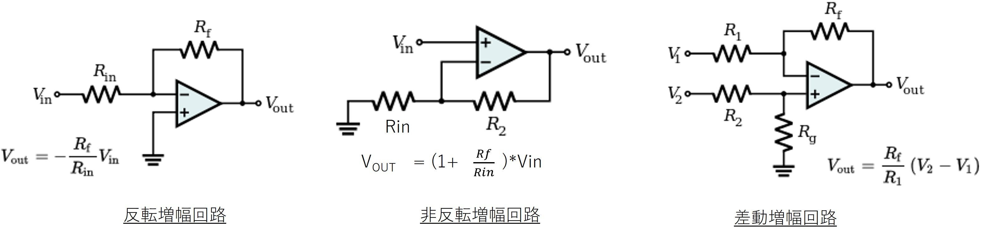 オペアンプは、出力信号を入力端子に戻して(負帰還をかけて)使います。