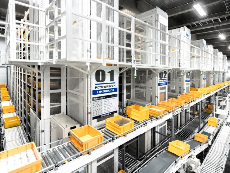 ロータリーラックHは、保管・検索・仕分けの3つの機能を持ち、多目的に活用できる 高速入出庫タイプの自動倉庫システムです。