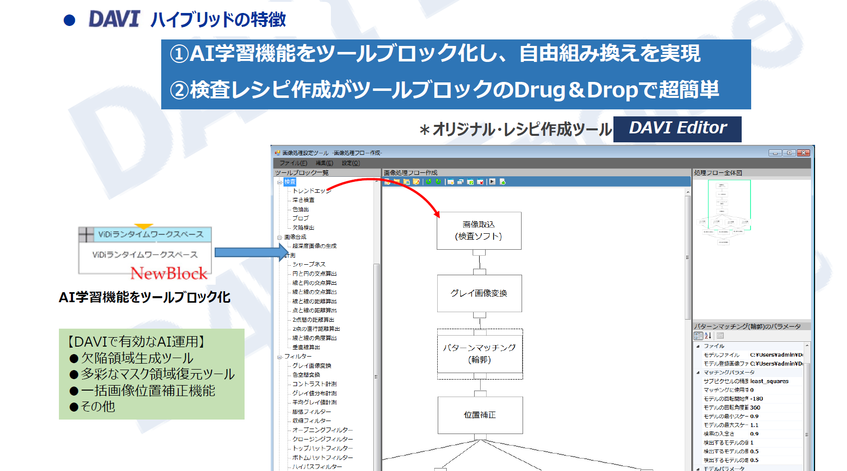 画像処理ライブラリを豊富に準備。DAVI Editorへ実装可能。