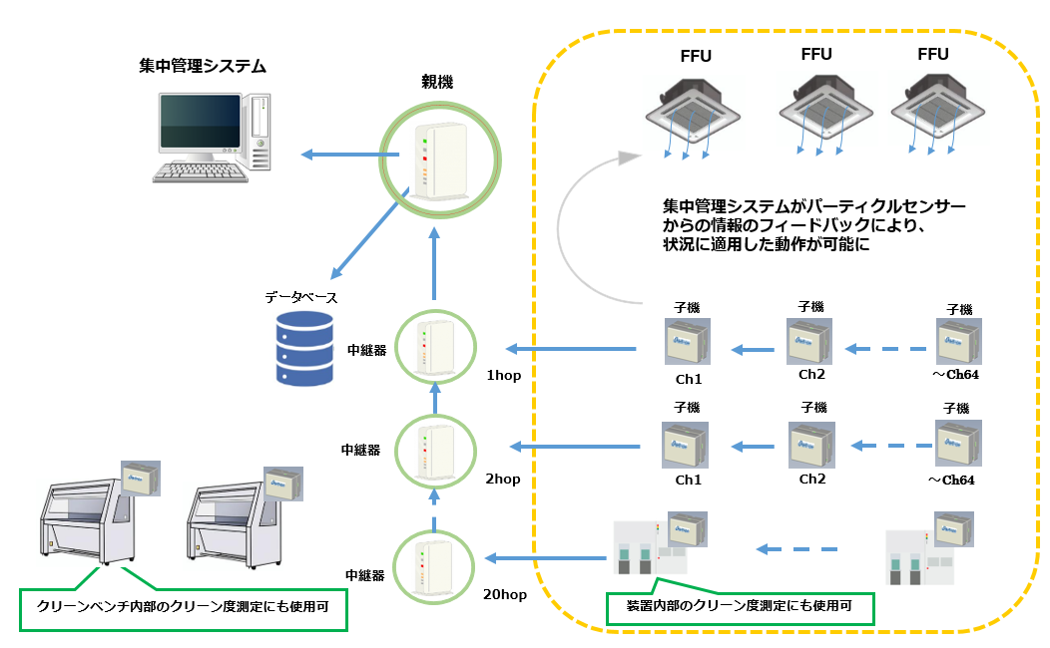 - パーティクルの発生状態の定常監視と突発感知による工場内保全が可能