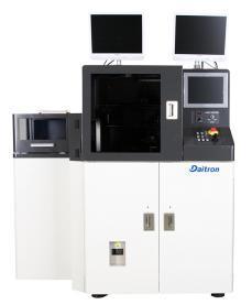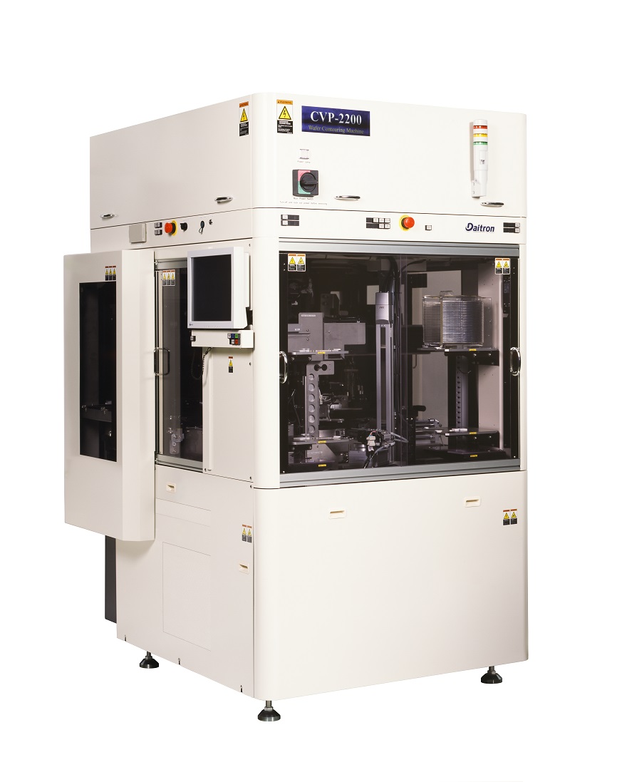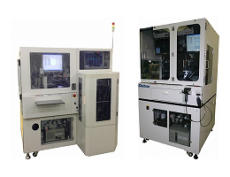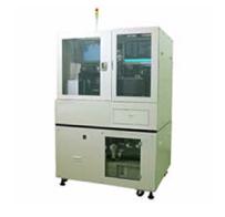 ダイヤモンドカッターを使い、所定の位置を画像処理で認識、ポイントやフルでスクライブ(傷入れ)をし、劈開のきっかけ作りを行います。