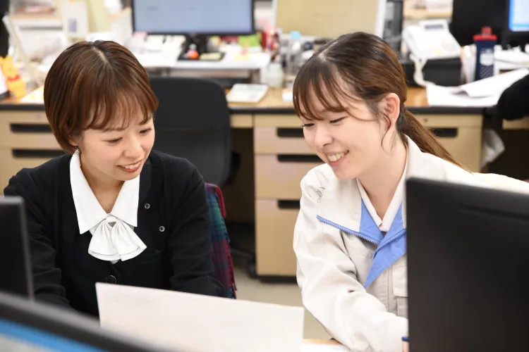 - 営業事務はお客様と工場の作業者の方々の間にいるため、双方の板挟みになる場面が多々あります。それぞれの要求に折り合いをつけていくのが難しいのですが、コミュニケーションの取り方次第で状況が変わることに気付きました。お客様に対しては進捗状況を細かく伝えたり、作業者には物事が円滑に進むよう先回りの行動を取ることを意識したりすることなどできるようになったと思います。