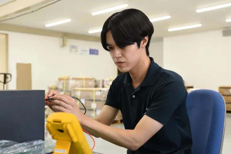 - 小型UPS(無停電電源装置)の検査業務、製品に関するお客様からの問い合わせ対応を行っています。検査では製品に問題点がないか、あった場合は原因が何かをみています。問い合わせ対応ではお客様からの様々な質問や依頼に対してお答えしています。